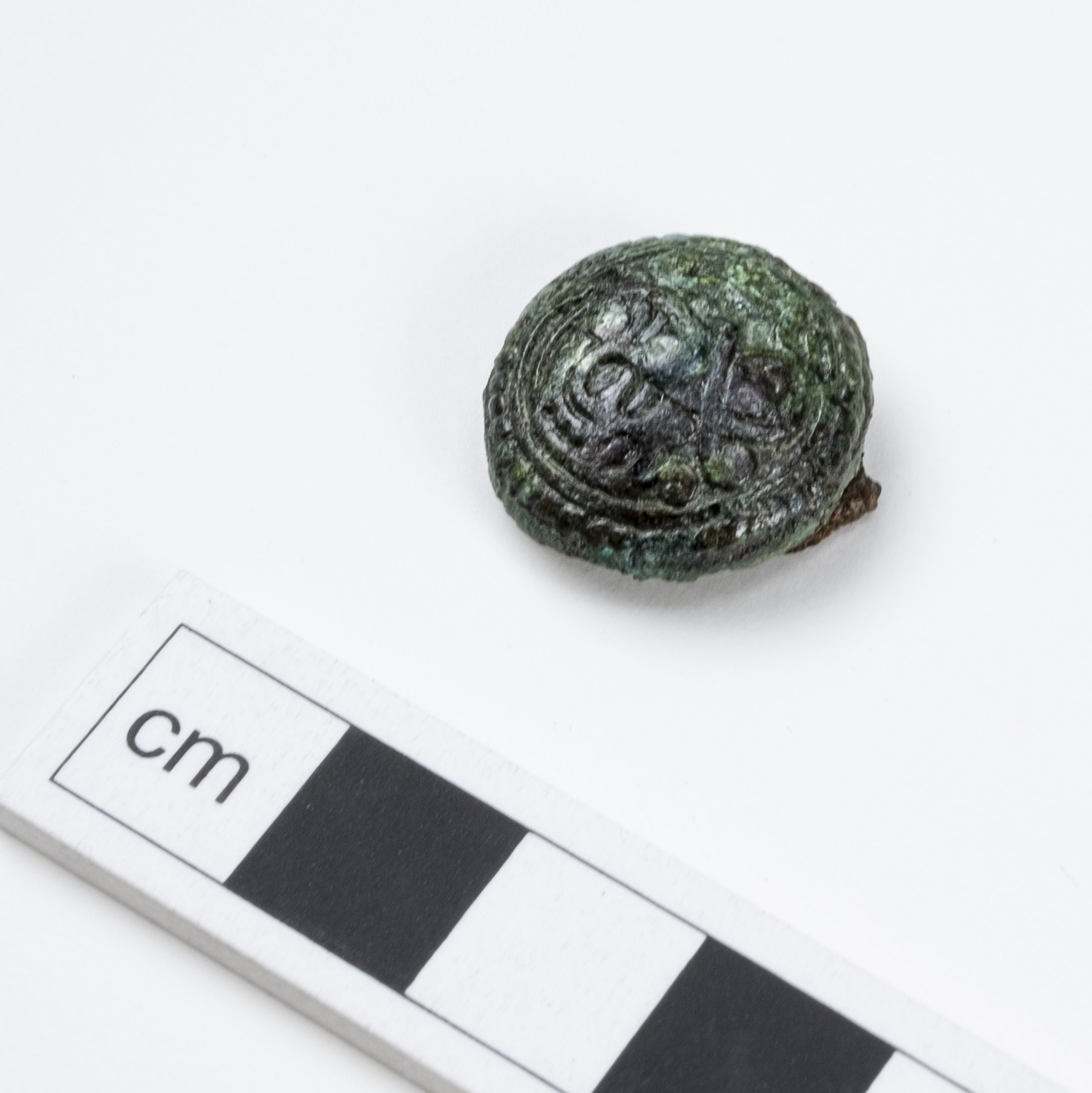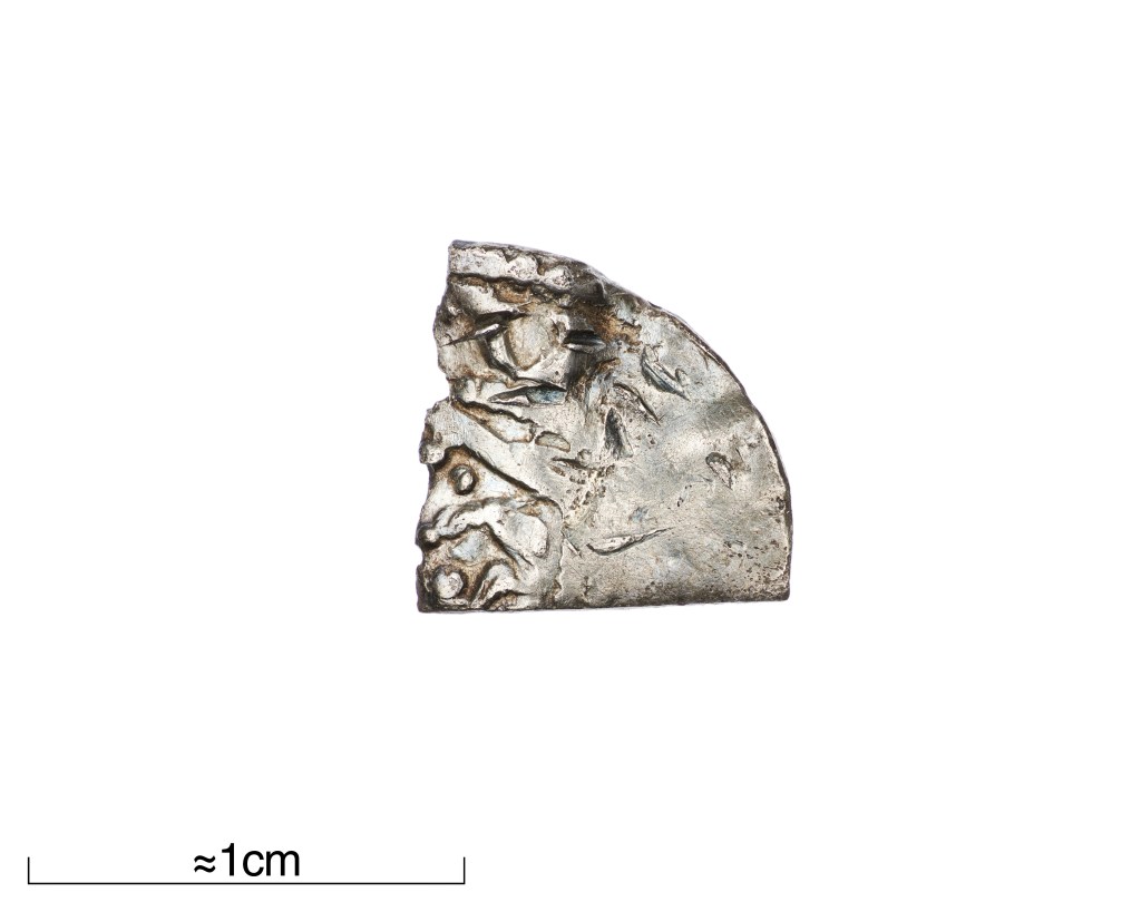 Next to the woman’s right femur in grave A28 was a quarter silver coin minted for Henry IV, who was German king between 1056 and 1084. The coin helps with the dating of the grave but also indicates international trade contacts. Dividing silver coins into quarters was a common way for Scandinavians to handle coins during the Viking Age. It was the weight of silver that determined the value of the coin so dividing it into smaller pieces was a way to make it easier to weigh.