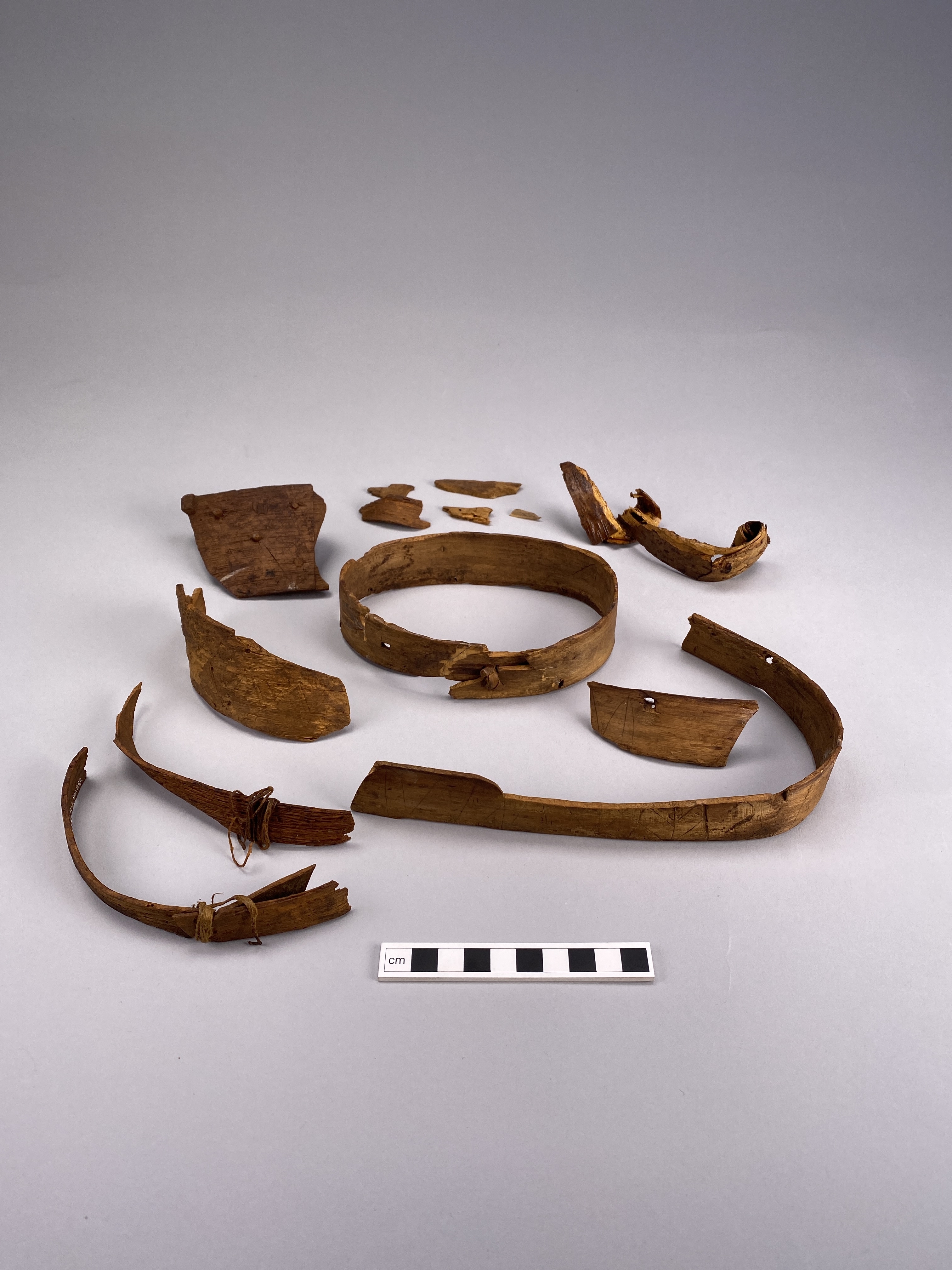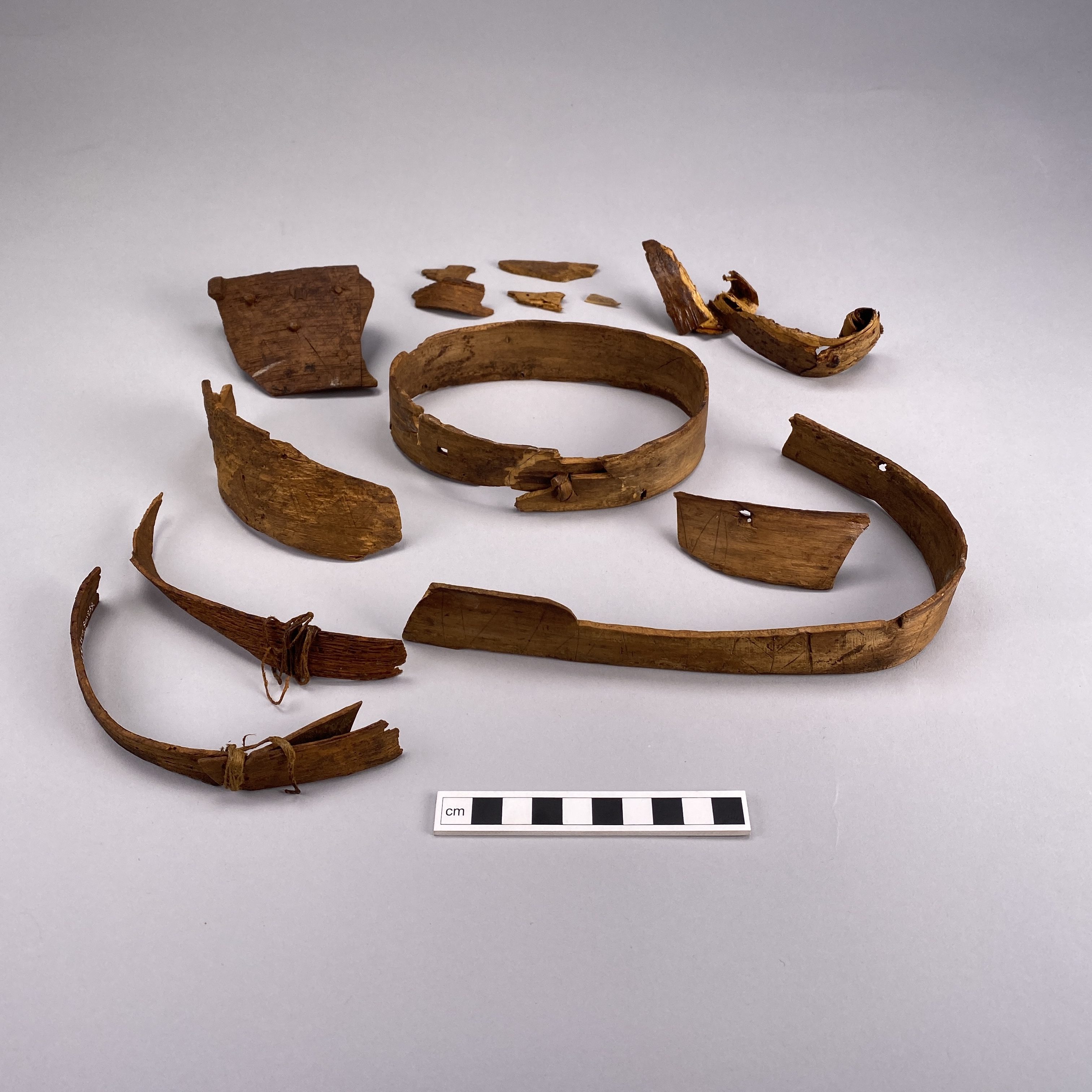 My interpretation was that the wood is too thin and has the fibers in the wrong direction to be a box/small chest. In addition, there were small silver rivets in the wood with no obvious function. My first interpretation was that the object was what remained of a bentwood box with a wooden lid. The earliest known bentwood box date back to the Bronze Age and in Sweden there are traces of bentwood boxes from the Viking Age, not least among the Sami people.