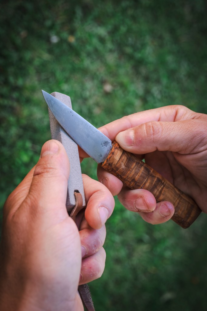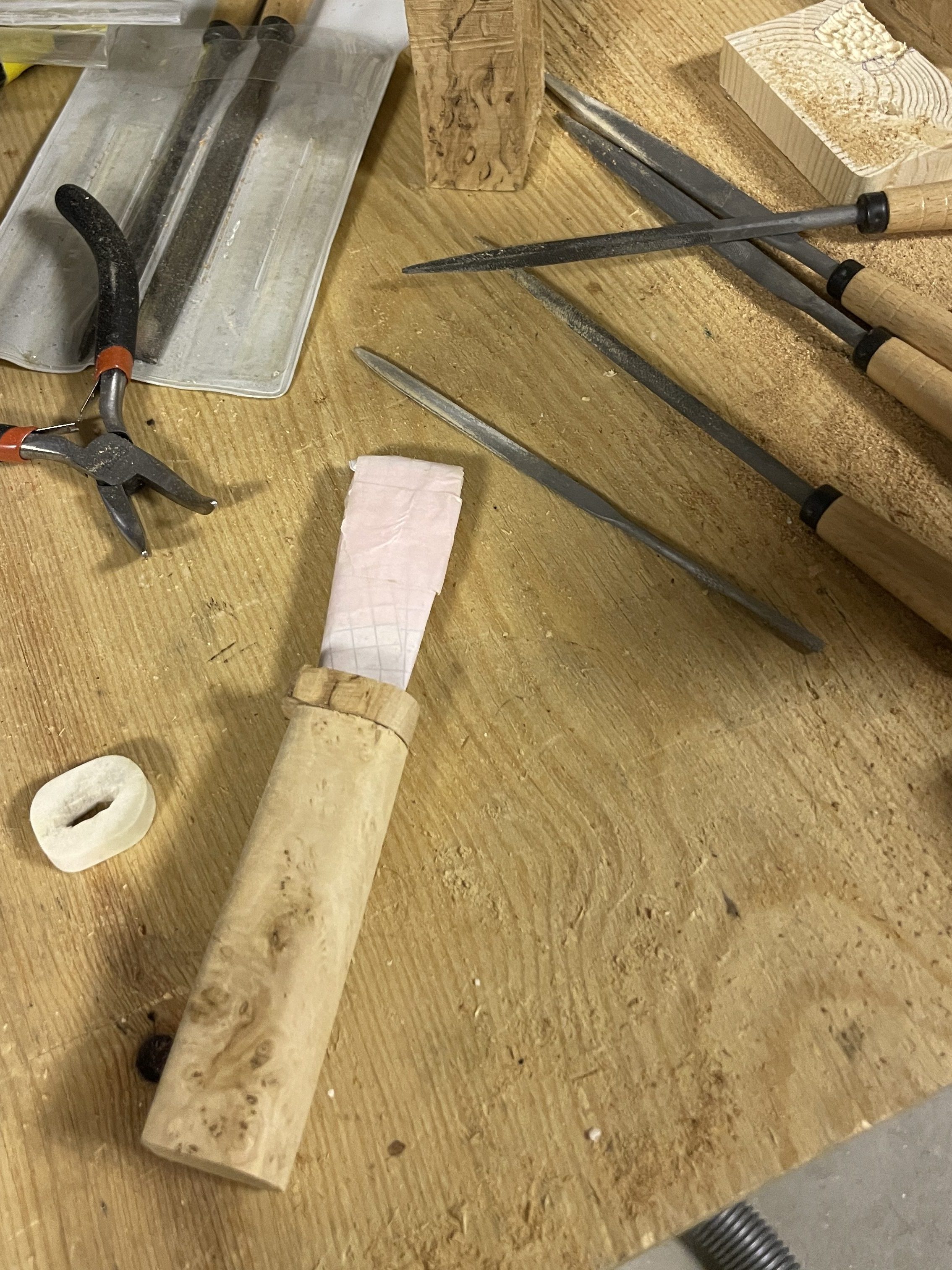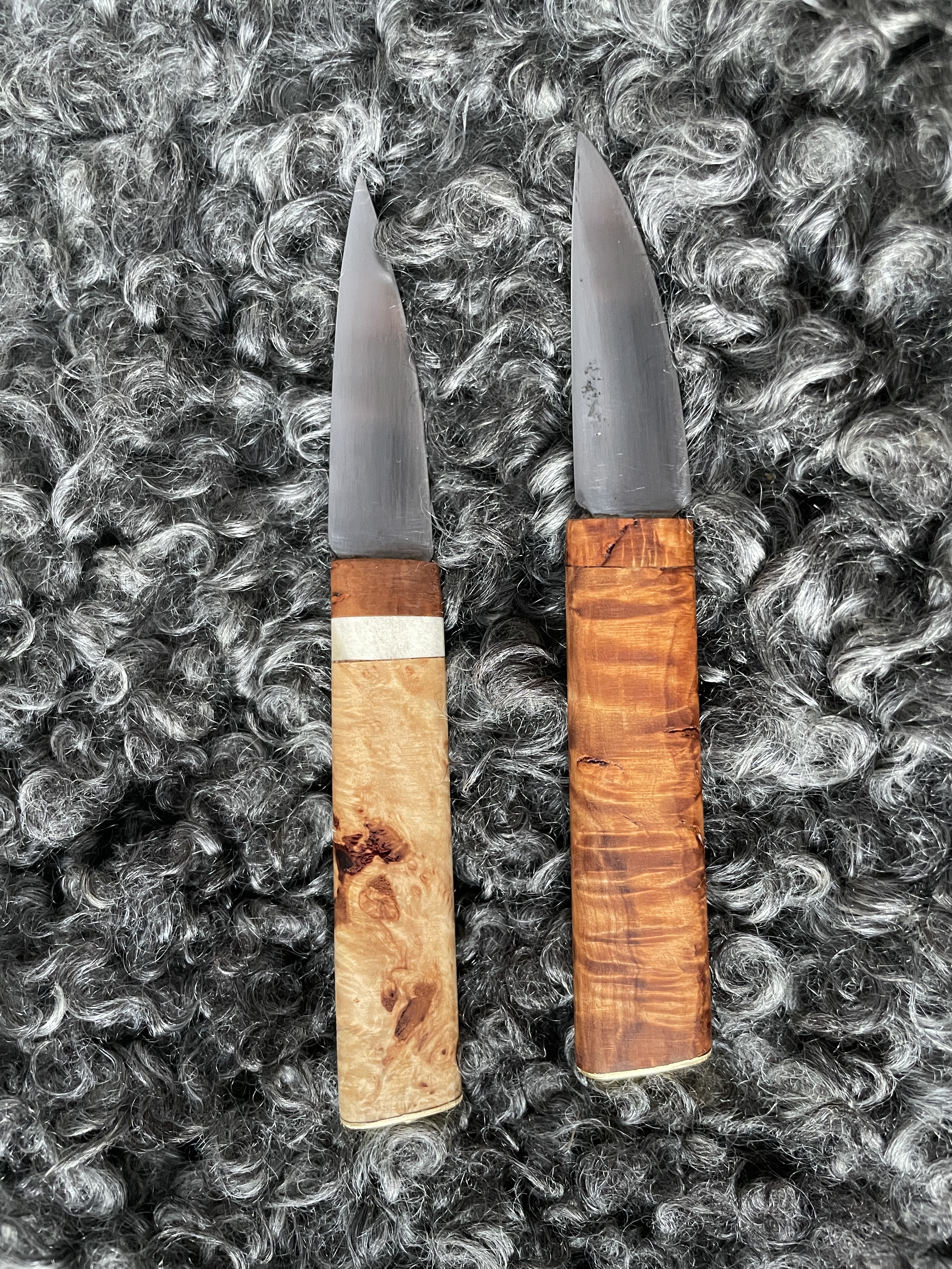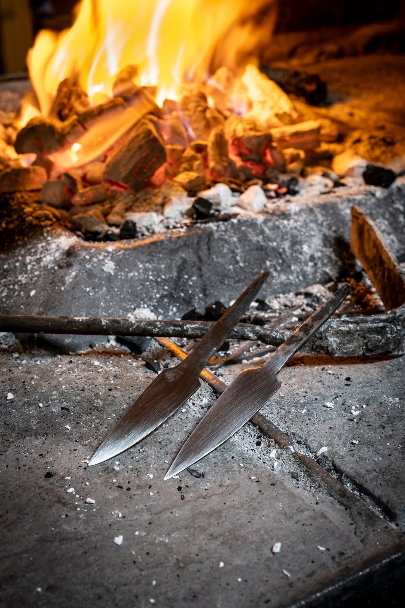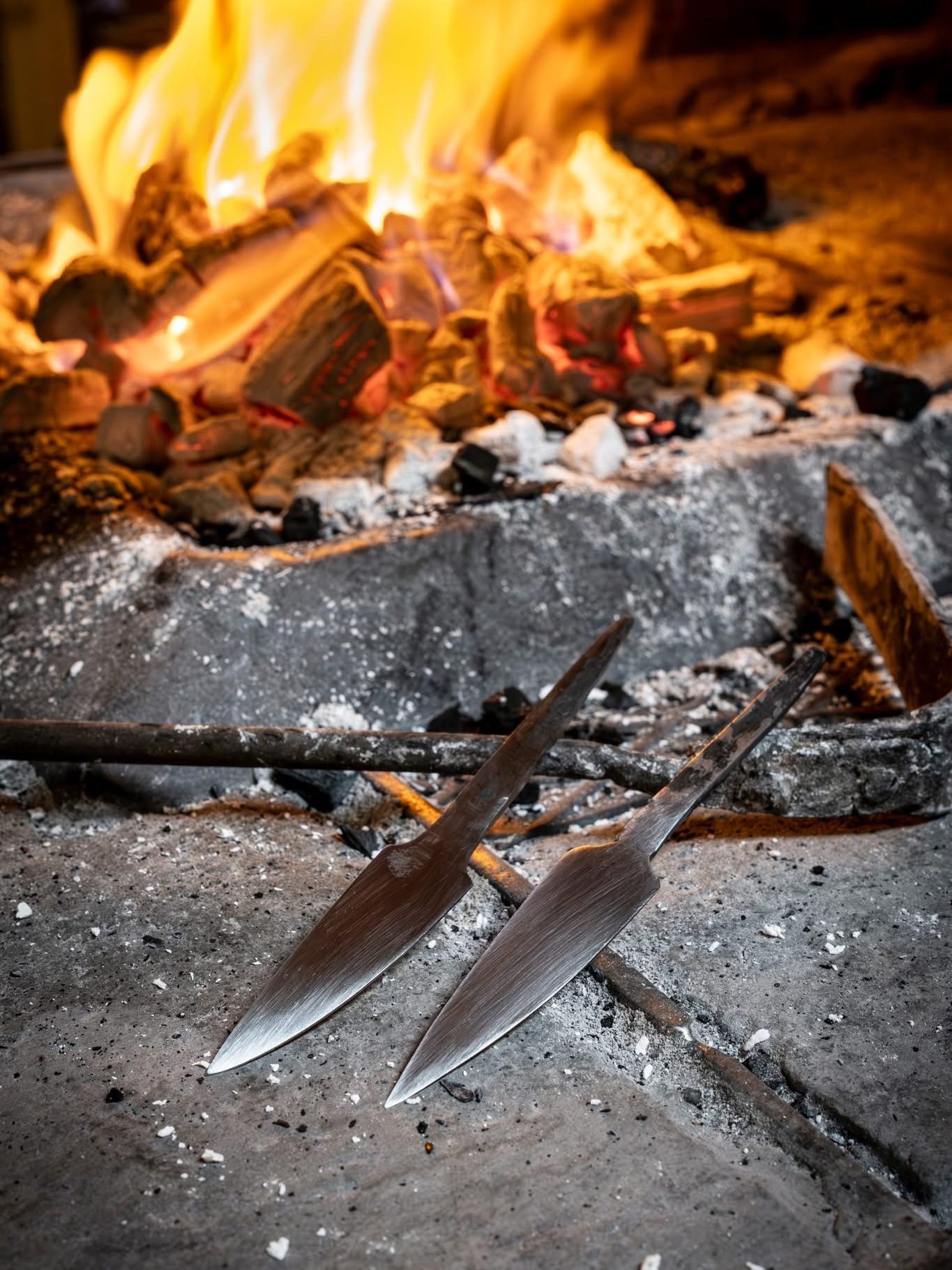 I forged the knife blades with fantastic help from Thomas Cederroth in his forge on Skeppsholmen in Stockholm. I really enjoy being in a forge and forging is a wonderful craft. The smells, the glow of the fire and the material that magically changes form. It is peaceful and challenging at the same time.
