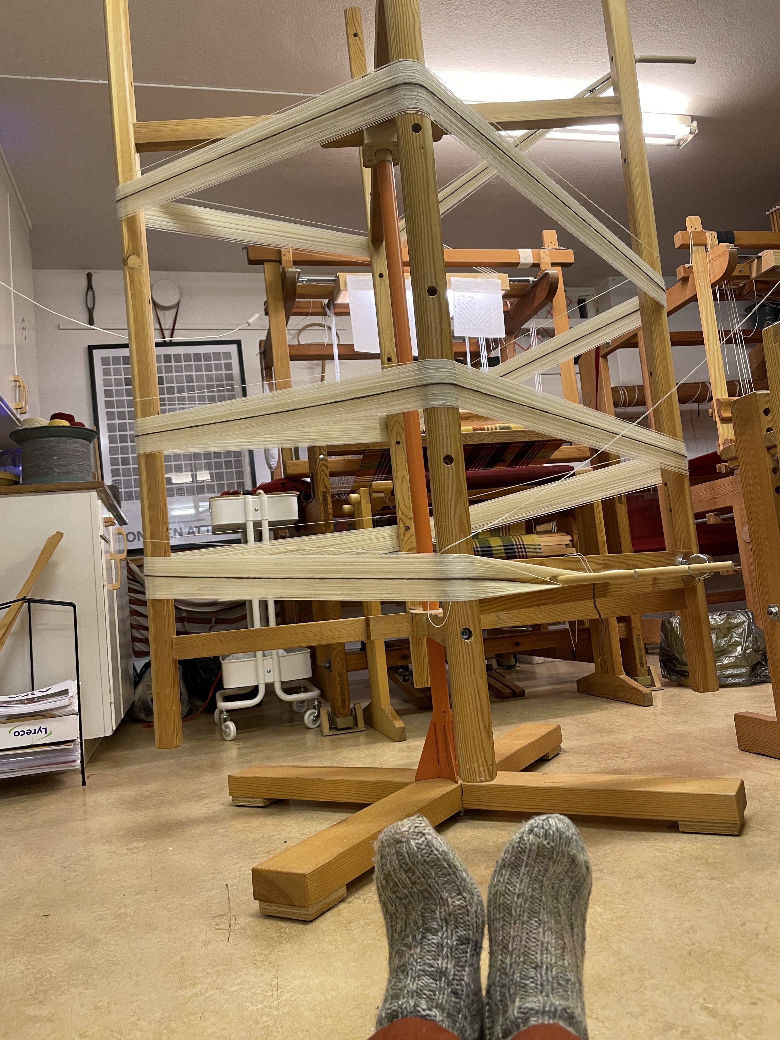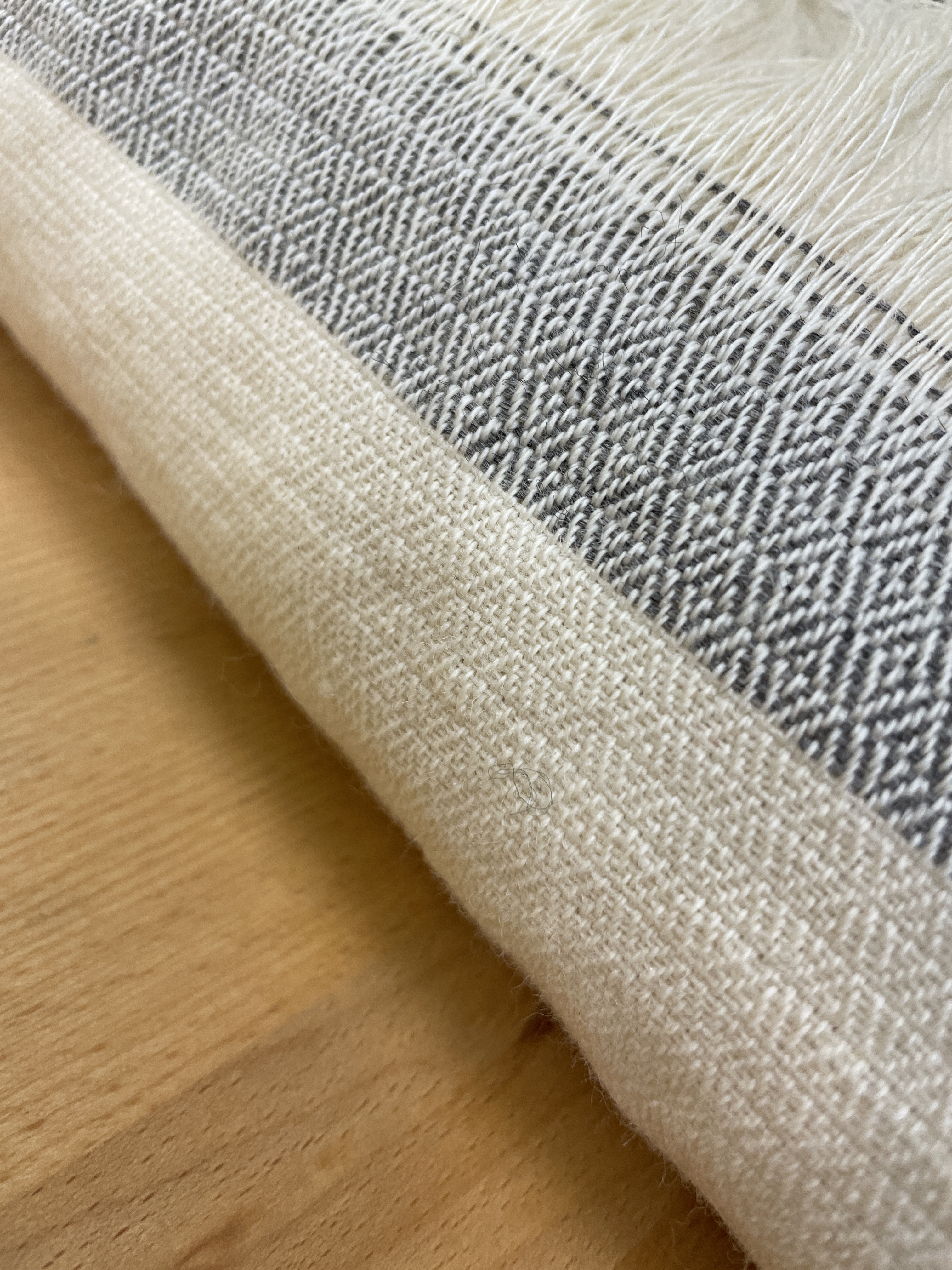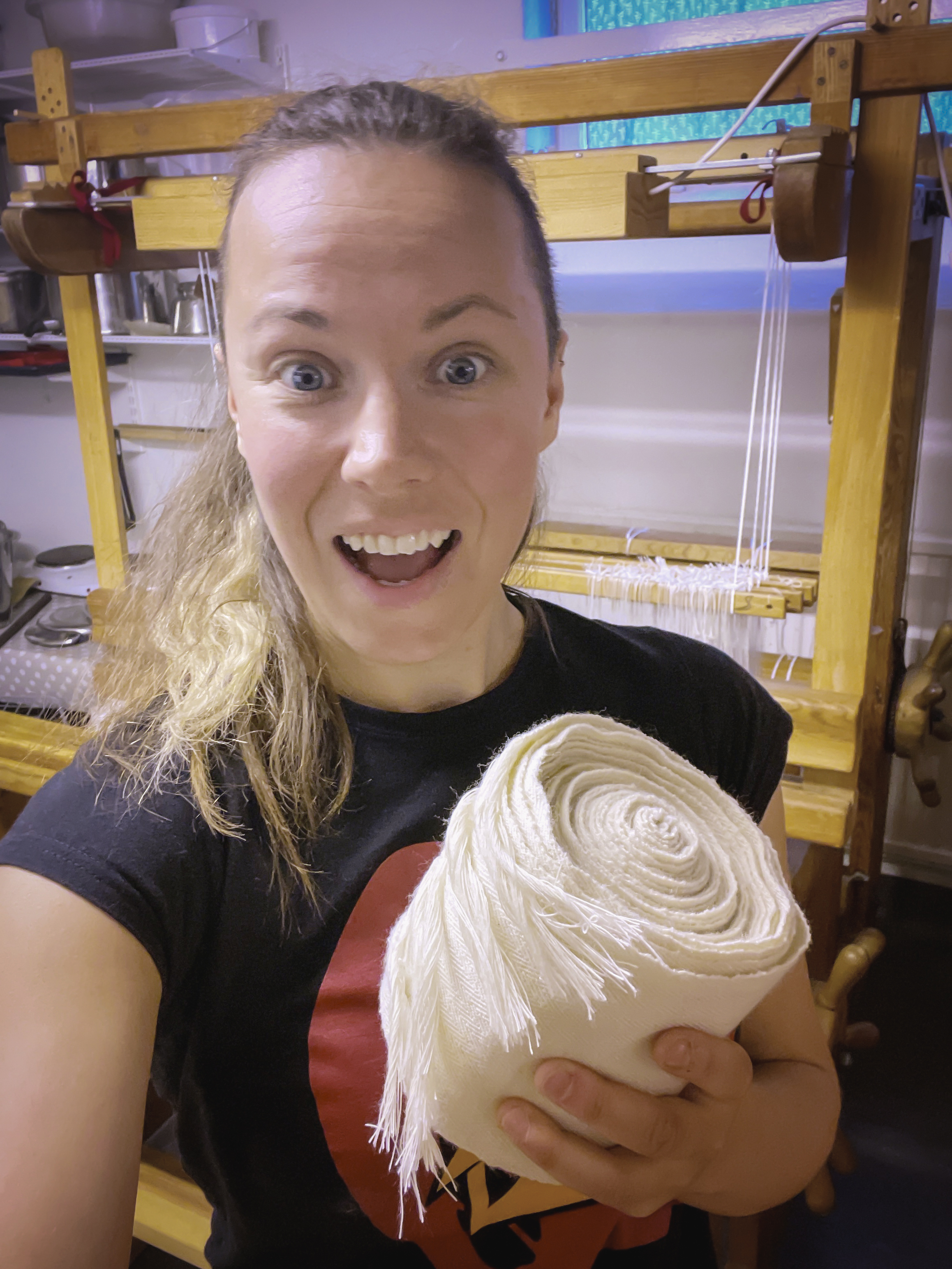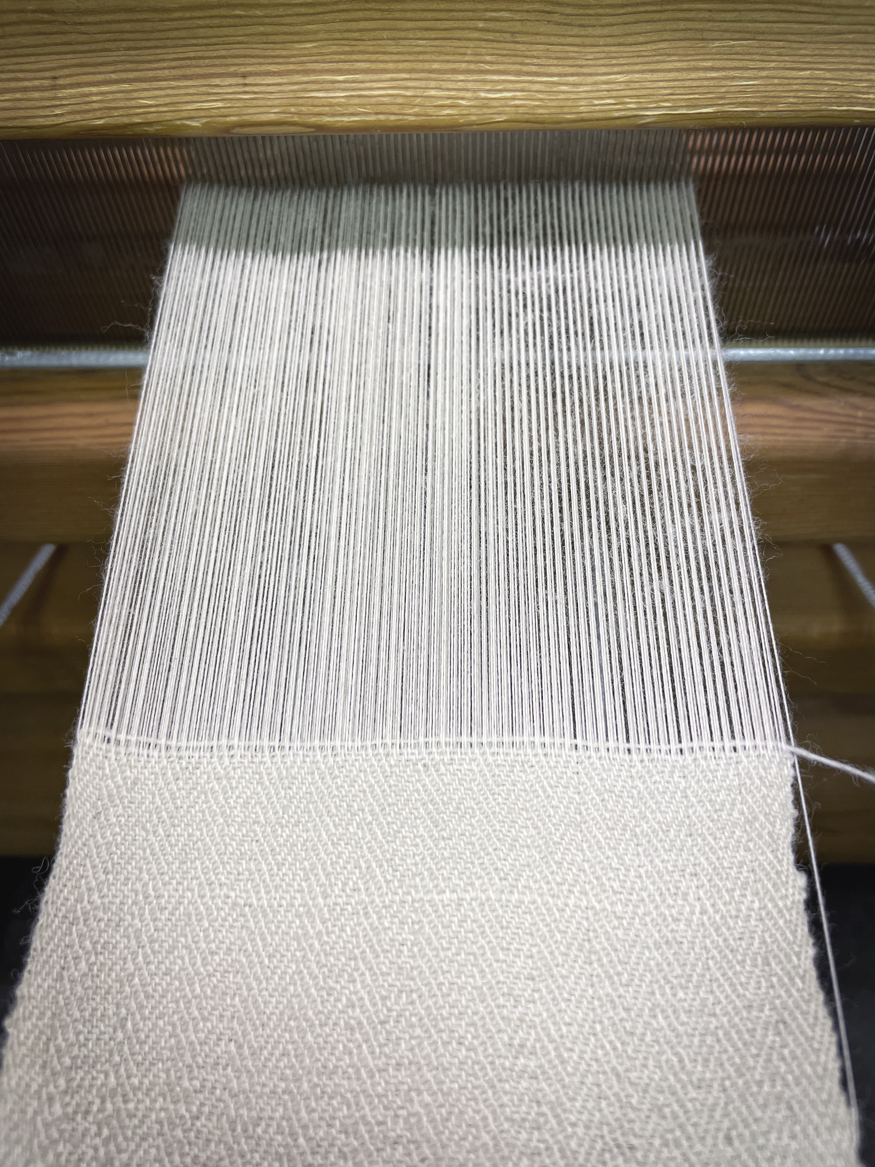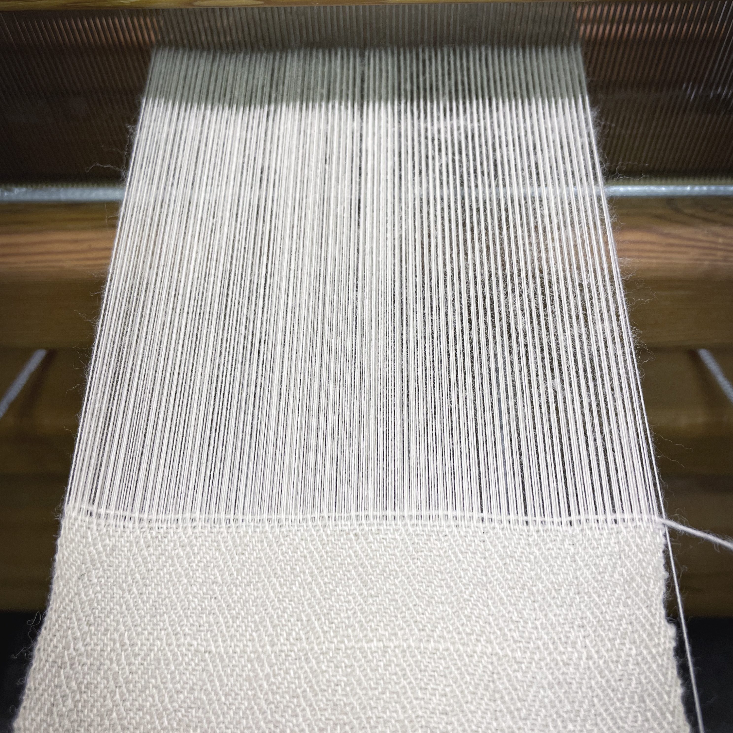 Like many fabrics from the Viking Age, it is dense in the warp, about 22 threads per cm, and looser in the weft, about 10 threads per cm. It was a challenge in patience and calculation for me to weave this pattern, but it was worth the effort because the fabric turned out very beautiful.