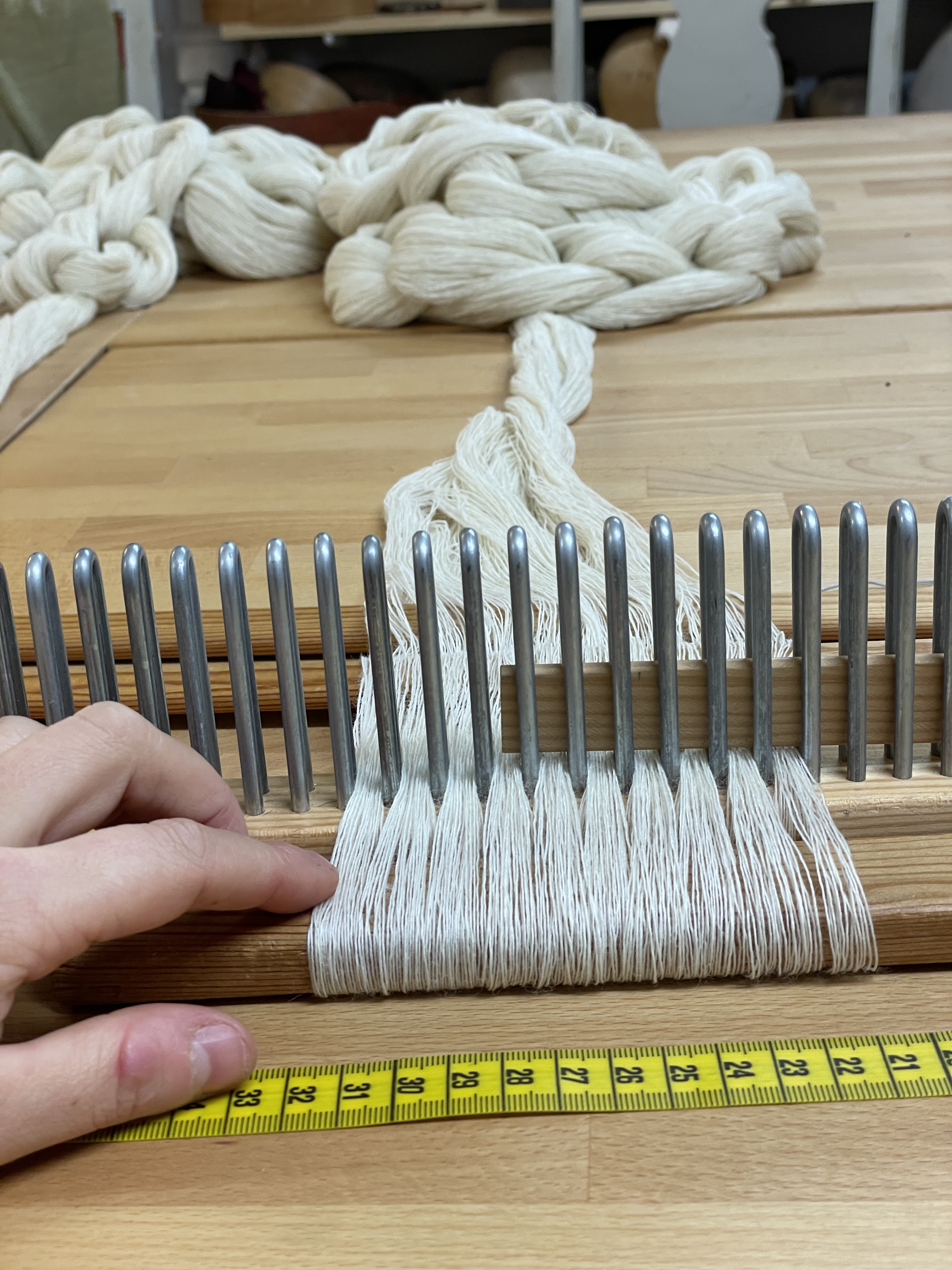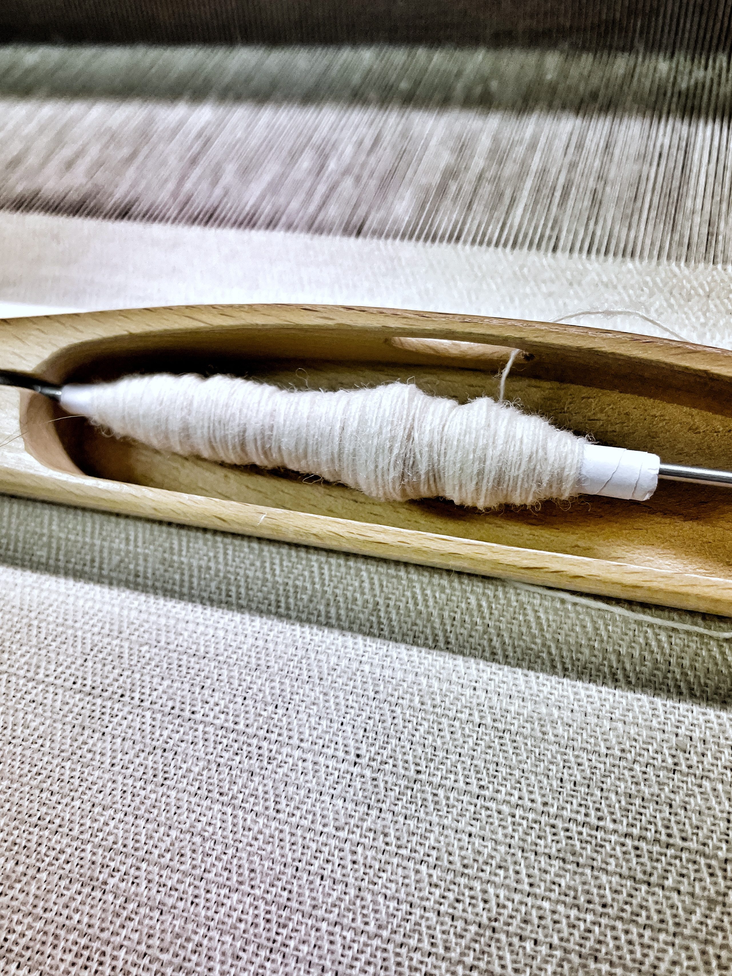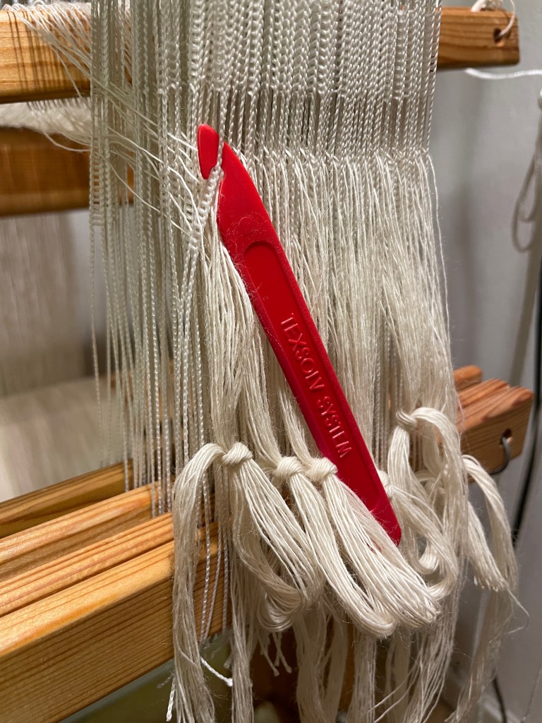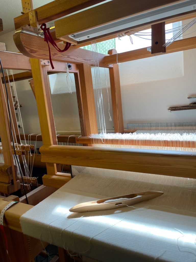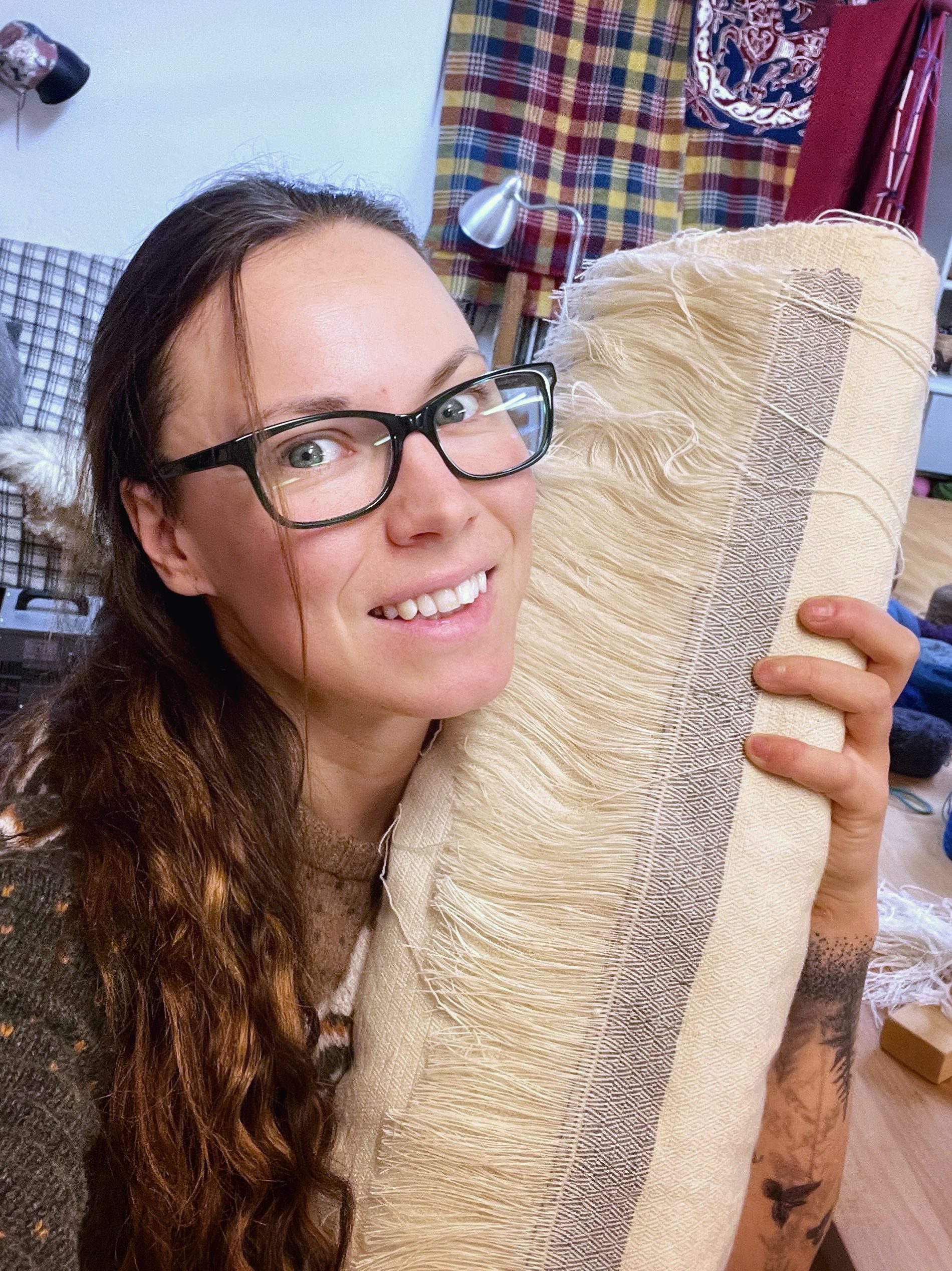 Like many fabrics from the Viking Age, it is dense in the warp, about 22 threads per cm, and looser in the weft, about 10 threads per cm. It was a challenge in patience and calculation for me to weave this pattern, but it was worth the effort because the fabric turned out very beautiful.
