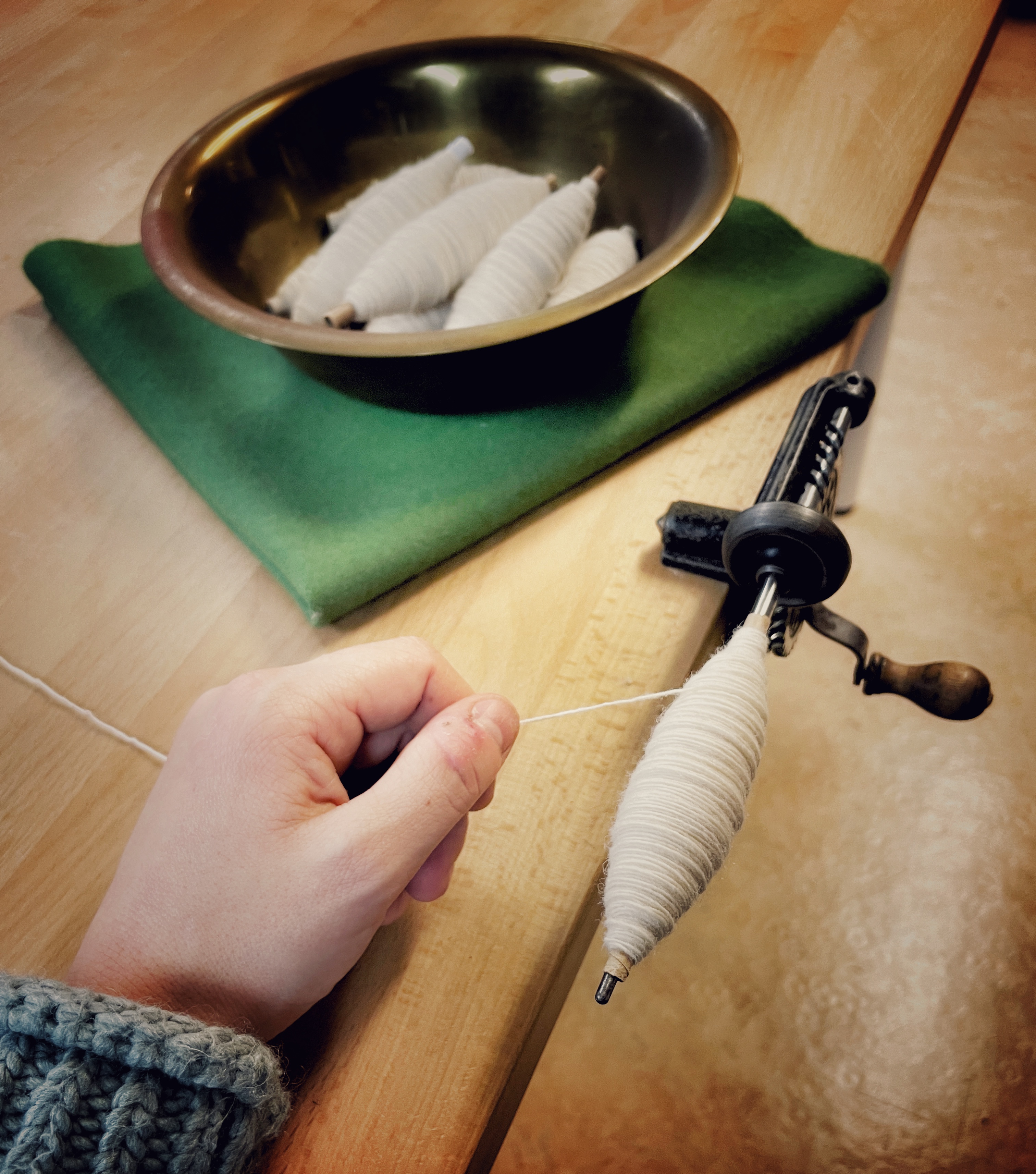 The thing that took the longest time in this entire project was weaving the fabric for the woman’s dress. Since there were no fabric fragments in the grave, I chose to weave a woolen fabric in diamond twill based on the fabric fragments found in rich Viking Age graves at Birka. With the fantastic help of Maria Neijman and Amica Sundström, I wove a 70 cm wide woolen fabric with single-ply undyed yarn.
