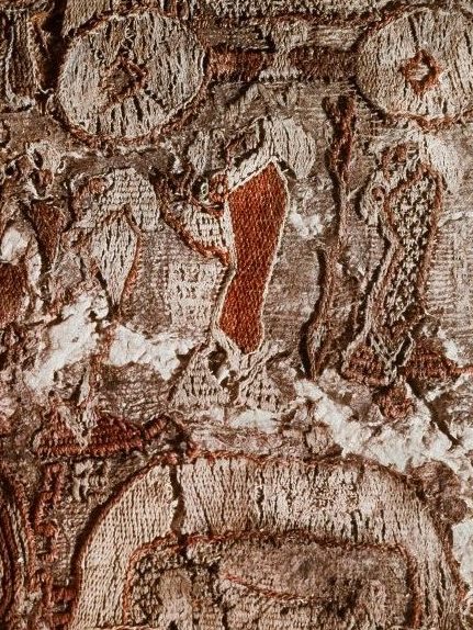 But the most exciting thing is that Andersson writes that “on the back of the belt were fragments of a linen fabric, woven in plain weave with Z-sun thread, and on the belt’s buckle were fragments of a woolen fabric.” As a textile nerd, I am a little extra happy about that find.