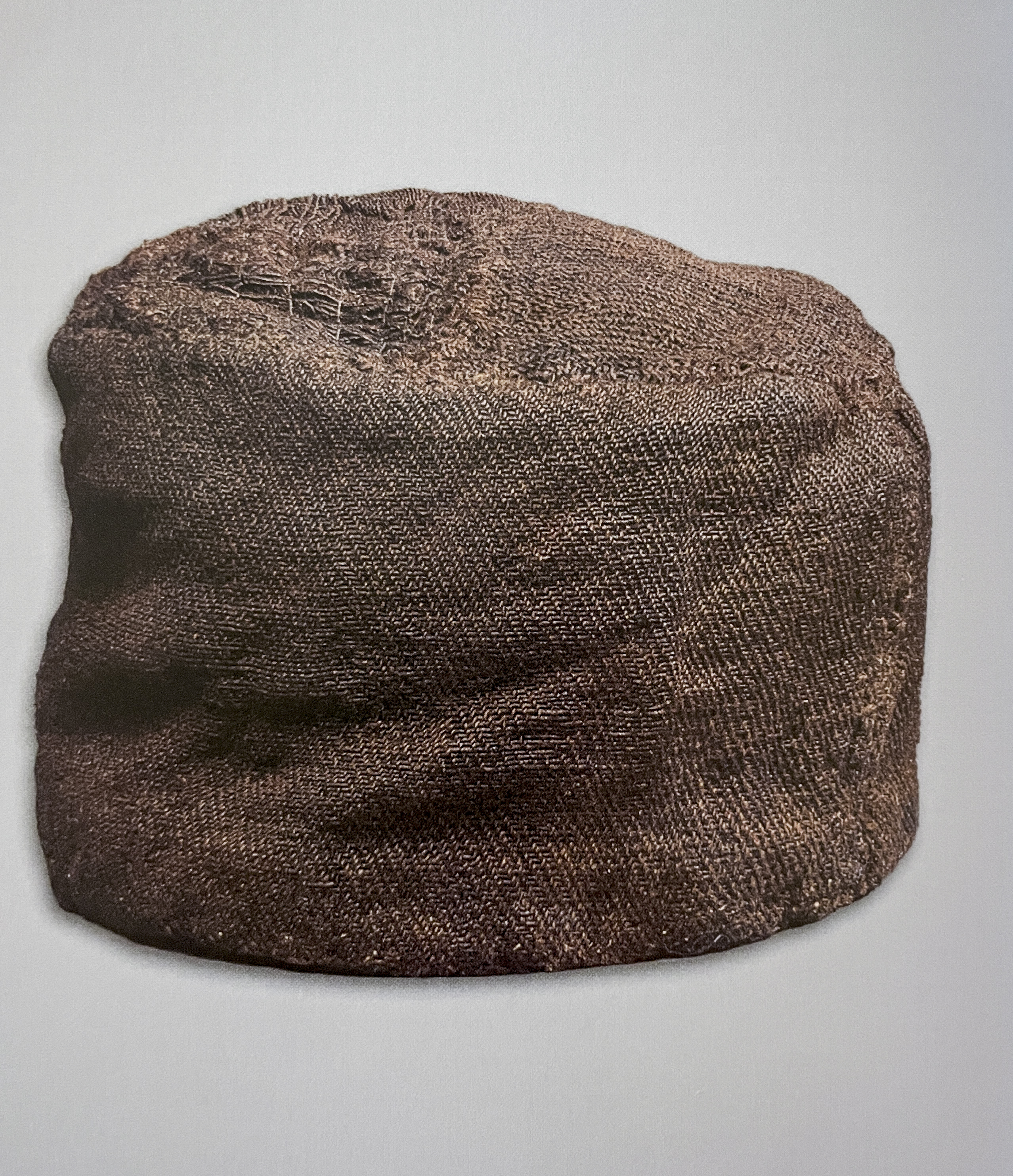 Type B: A round-shaped hat sewn together from wedge-shaped pieces of fabric. A wedge-shaped hat like this, lined with fur, is also preserved from Moshchevaya Balka.