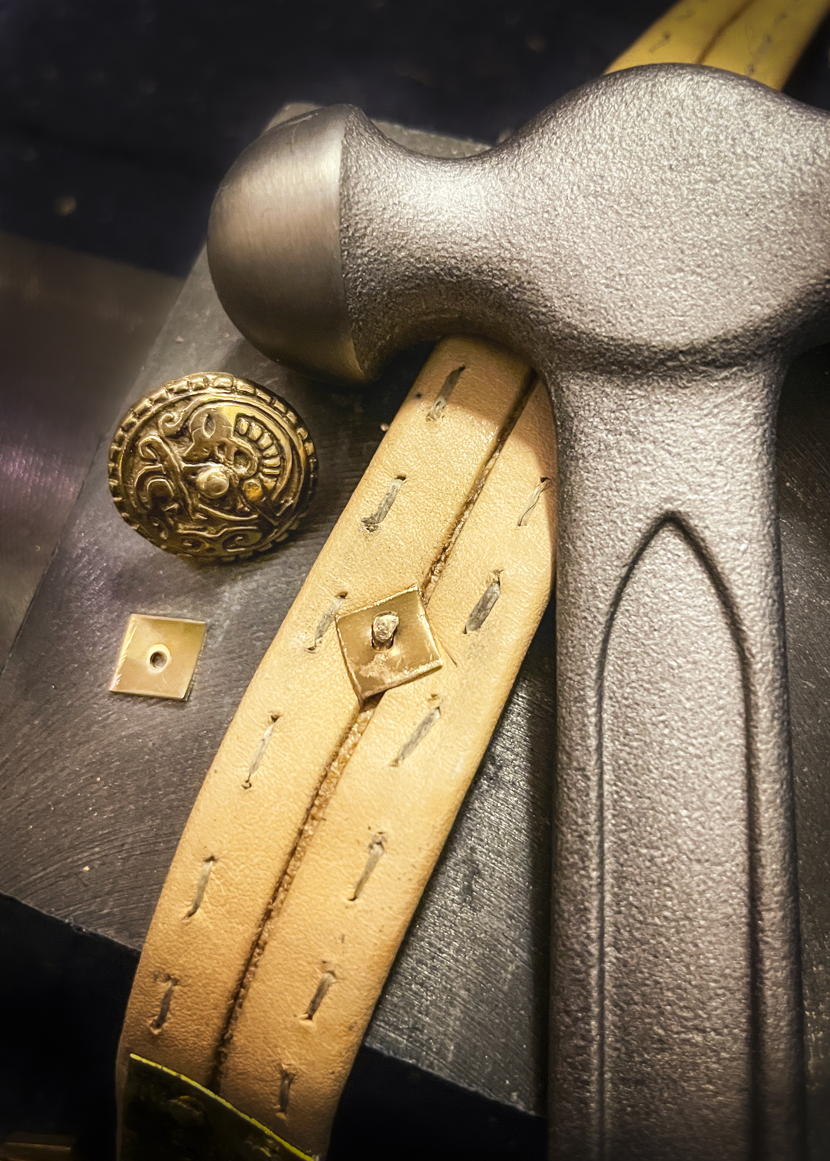 Then came the challenge of joining all the parts of the belt and hammering all the rivets. It was harder than I thought to hammer the rivets neatly and evenly, but with a good ball-point hammer the end result was ok. Thanks to Karl Kronlund for the advice and support.