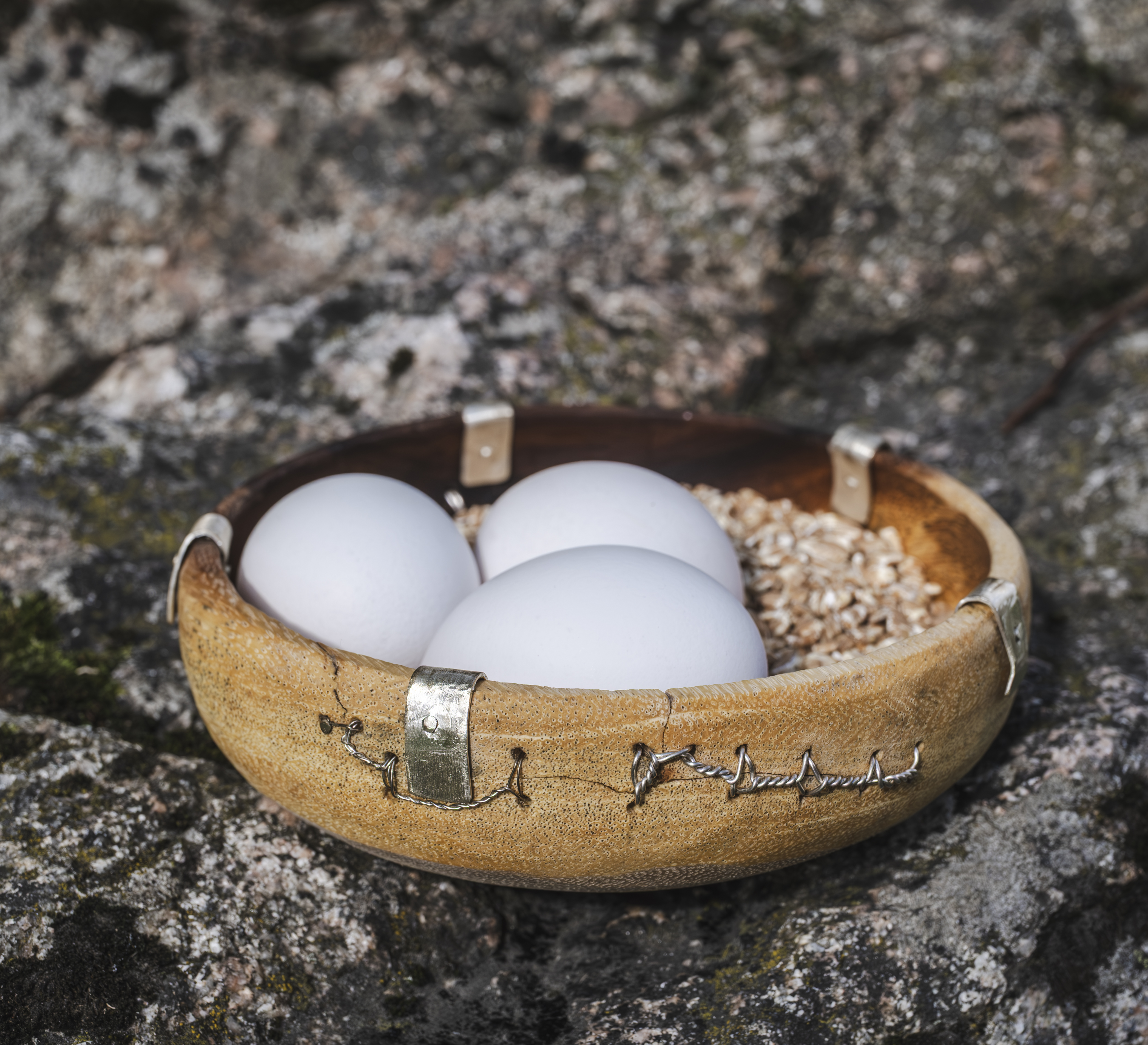 Since my knowledge of working with silver and wood is very limited, the result of the bowl is far from perfect. Only when I was finished did I discover that the bowl is probably made of a non-Scandinavian type of wood. And my handmade silver fittings are a bit crooked, but when you look at the original finds in my reference material, they are not always so skillfully executed either. I can’t possibly say that the object in grave A11 was a bowl, but that is my best interpretation based on the knowledge I have today.