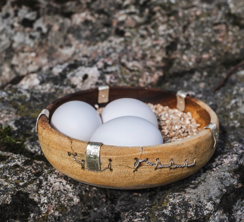 I continued to look for more references in a Swedish context and found several examples of Viking Age wooden bowls decorated with riveted thin silver or bronze fittings around the edge and in some cases repaired with twisted silver wire.